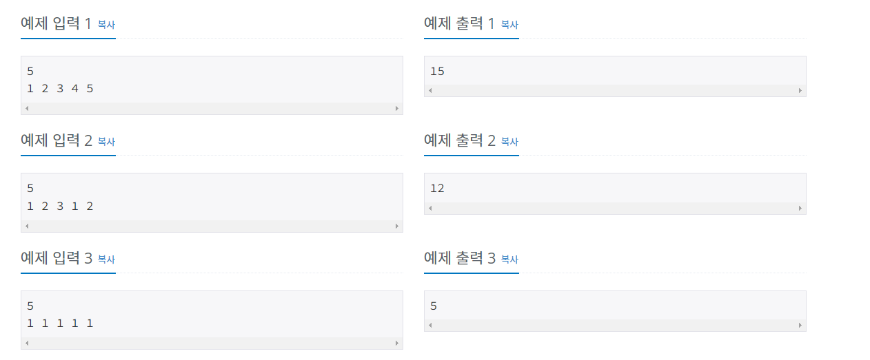 첫 번째 줄에는 수열의 길이 N이 주어진다. (1 ≤ N ≤ 100,000)